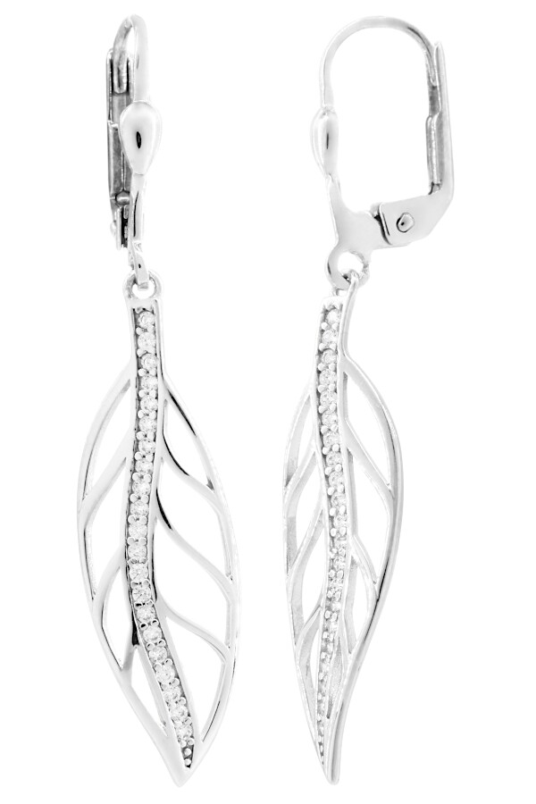 Náušnice visací bílé zlato Lístek se zirkony