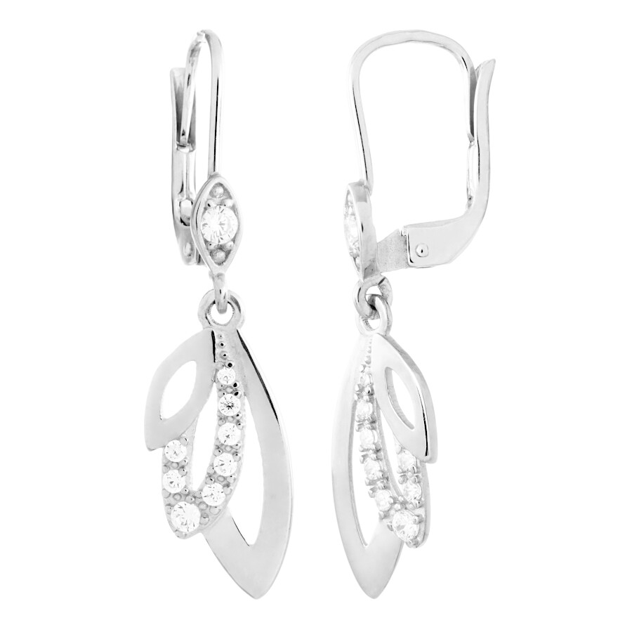 Náušnice visací bílé zlato Listy se zirkony