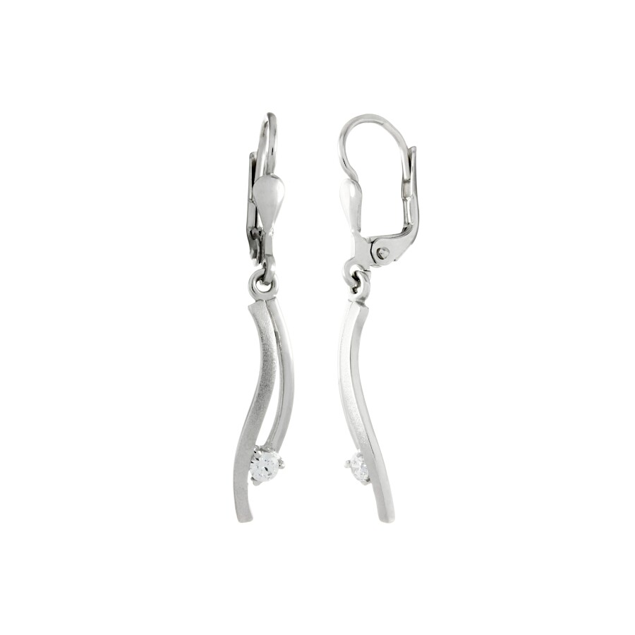 Náušnice visací bílé zlato mat-lesk Vlnky spojené zirkonem