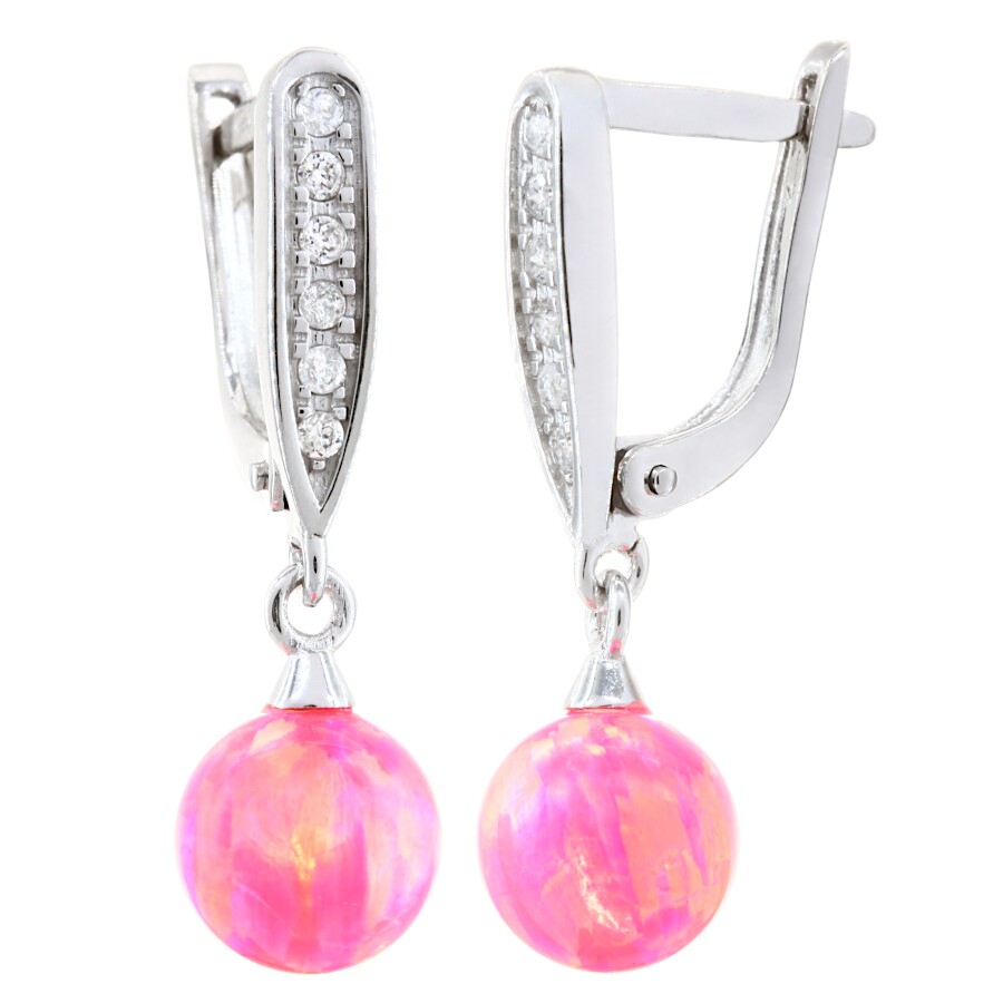 Náušnice visací bílé zlato Opál růžový syntetický