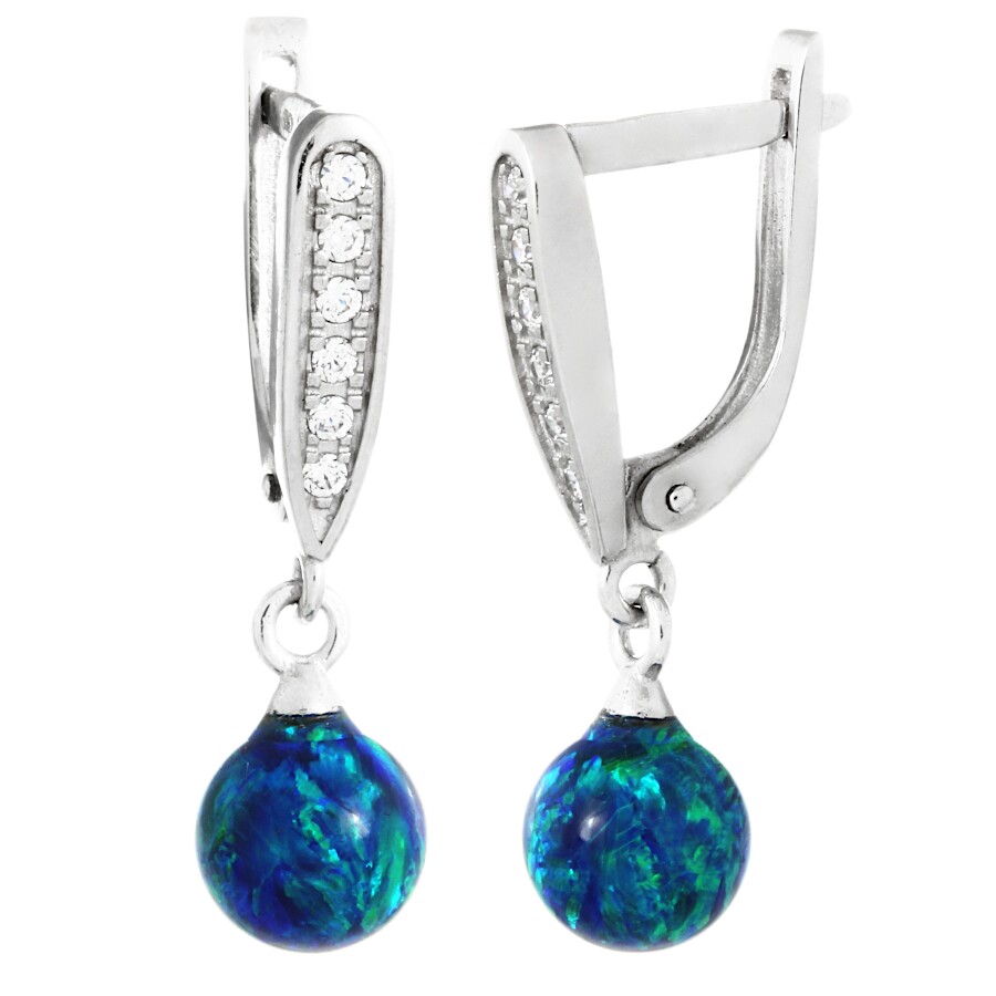 Náušnice visací bílé zlato Opál tmavě modrý syntetický