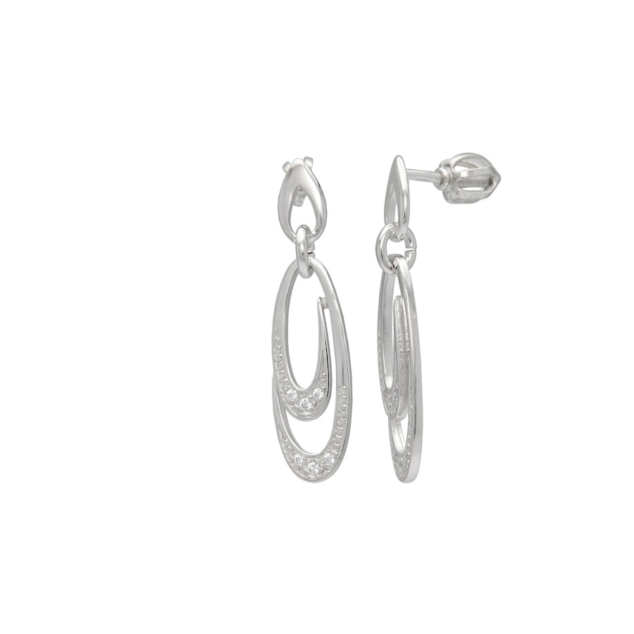 Náušnice visací bílé zlato Ovál dvojitý se zirkony SL-72007