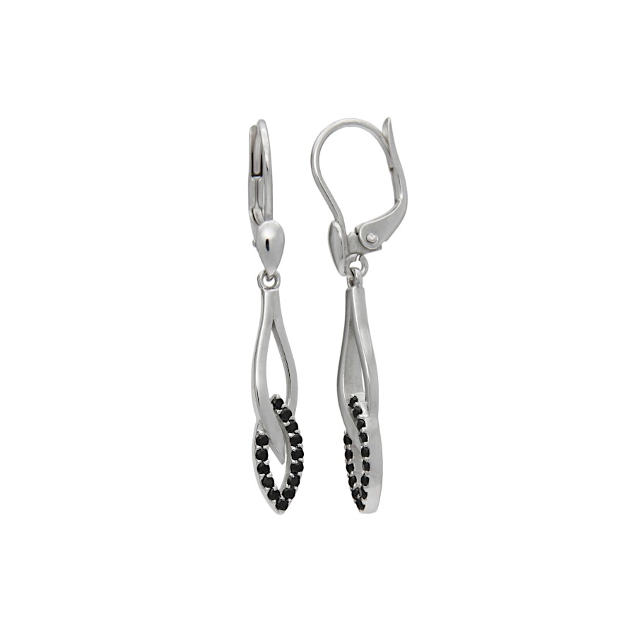 Náušnice visací bílé zlato Ovály spletené s černými zirkony