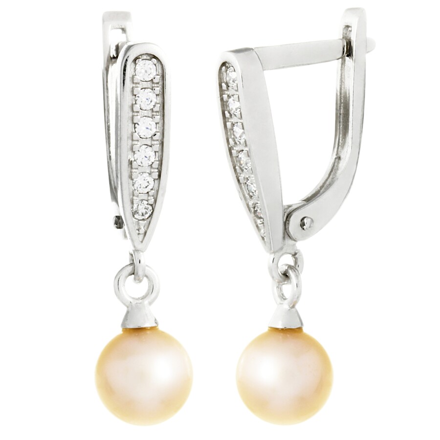 Náušnice visací bílé zlato Perla růžová