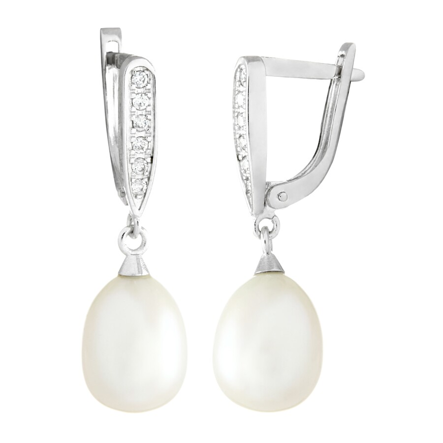 Náušnice visací bílé zlato Perla sladkovodní bílá