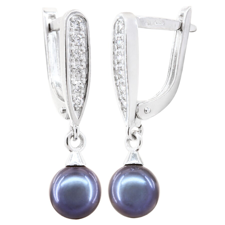 Náušnice visací bílé zlato Perla sladkovodní tmavá
