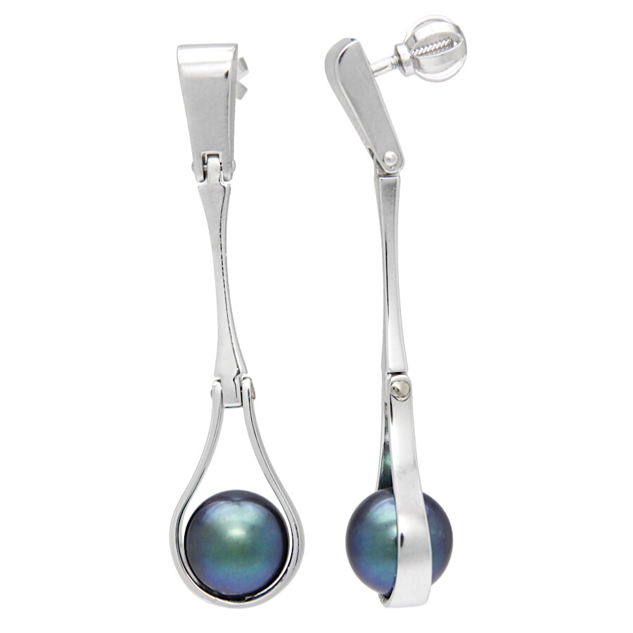 Náušnice visací bílé zlato Perla tmavá sladkovodní