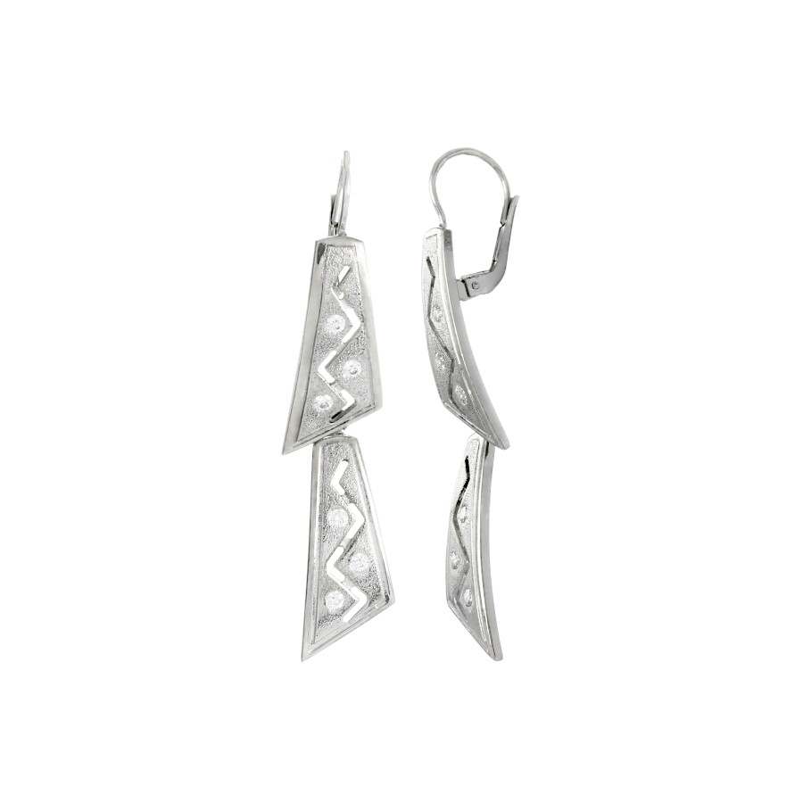 Náušnice visací bílé zlato Prořezané se zirkony ze soupravy