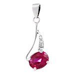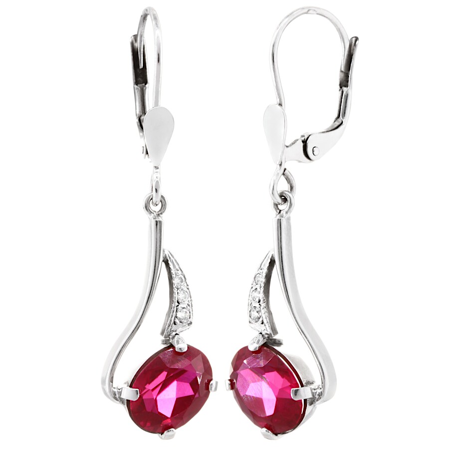 Náušnice visací bílé zlato Rubín syntetický se zirkony