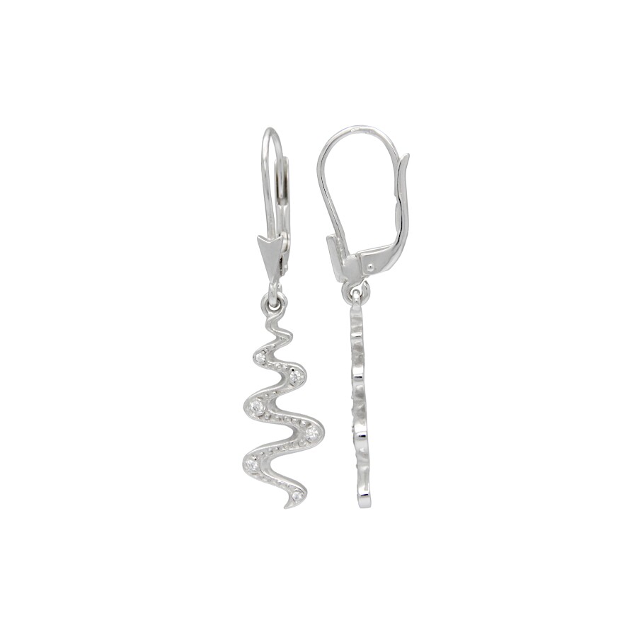 Náušnice visací bílé zlato Spirála se zirkony SL-67407