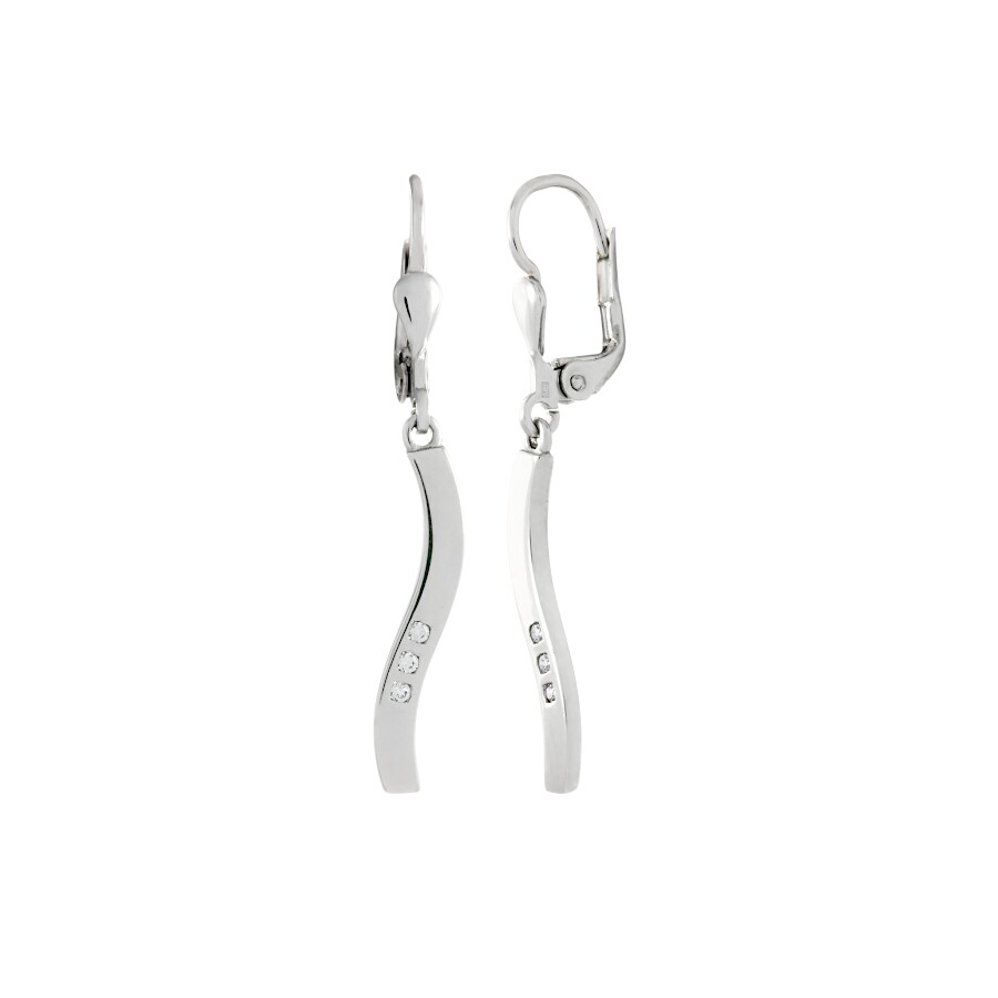 Náušnice visací bílé zlato Vlnka se třemi zirkony