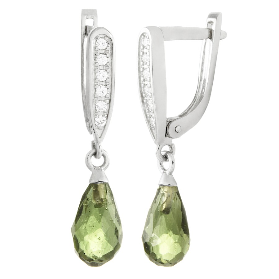 Náušnice visací bílé zlato Vltavín přírodní kapka
