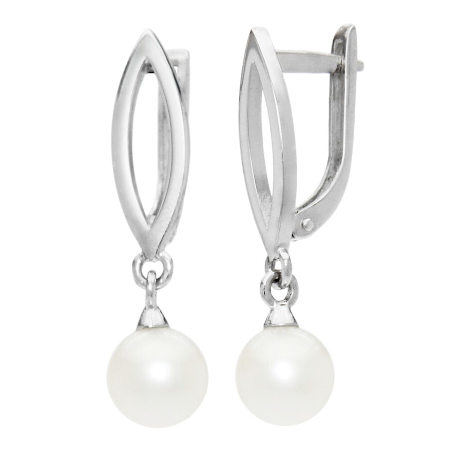 Náušnice visací ze soupravy s bílou perlou bílé zlato NO-133-4-pb