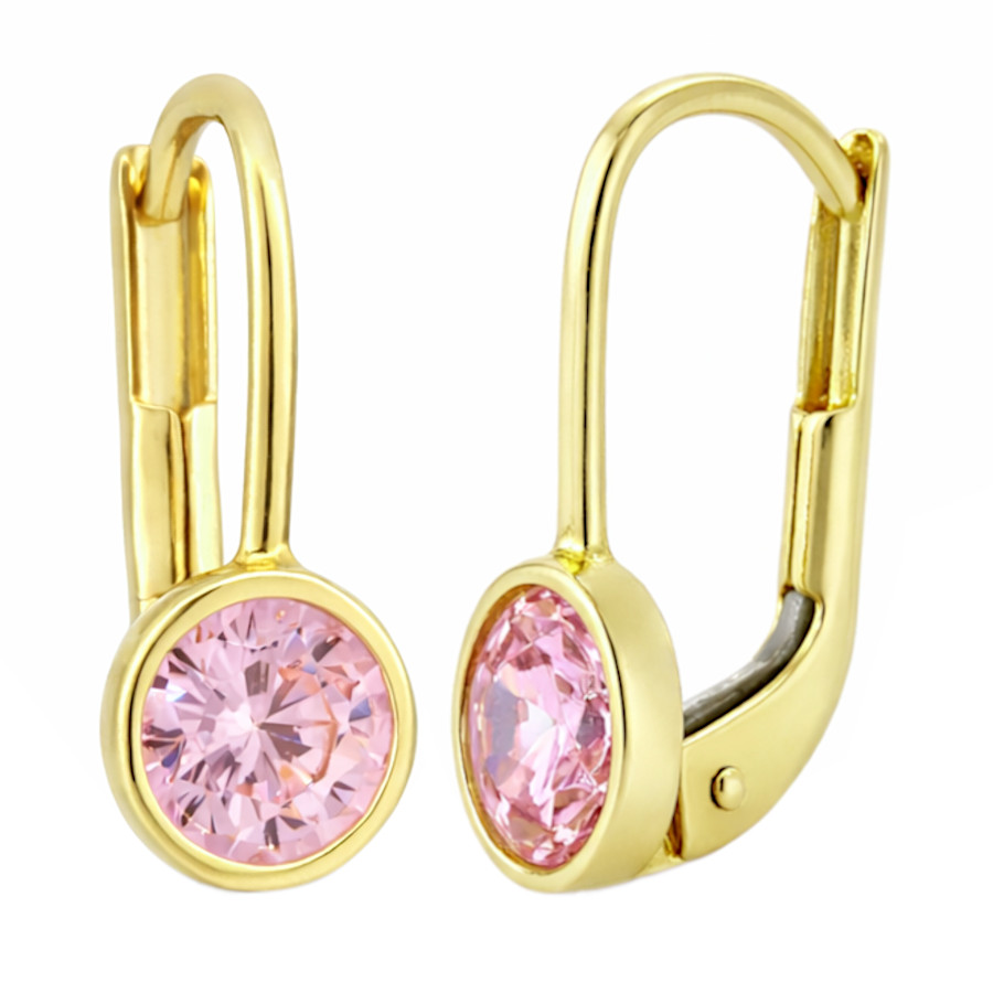 Náušnice zlaté Kolečko s růžovým zirkonem