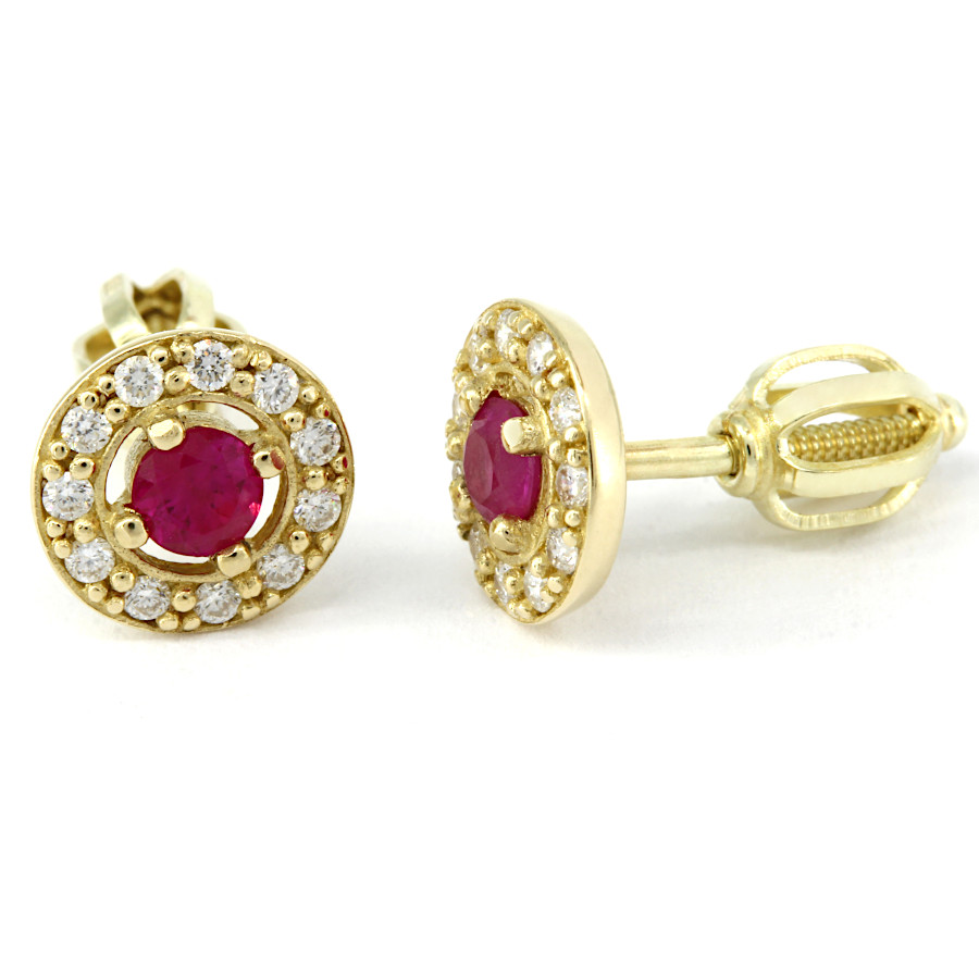 Náušnice zlaté Kolečko střed přírodní rubín s brilianty |