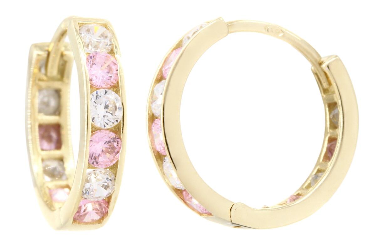 Náušnice zlaté Kruhy s bílými a růžovými zirkony