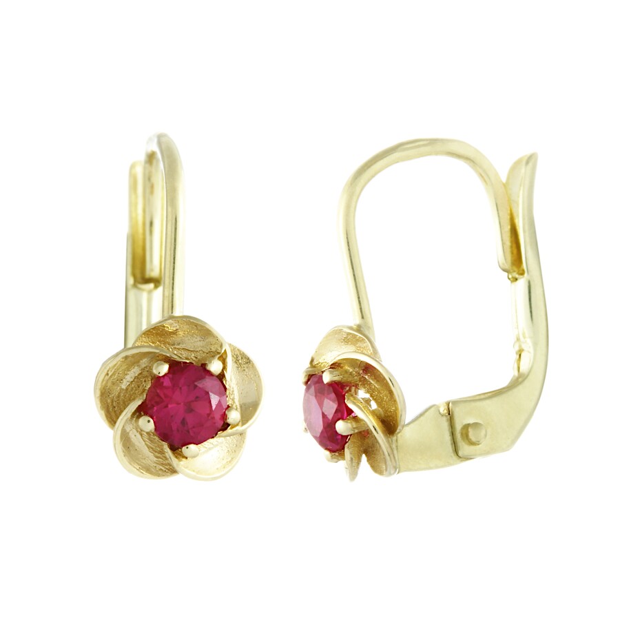 Náušnice zlaté Květinka střed červený zirkon