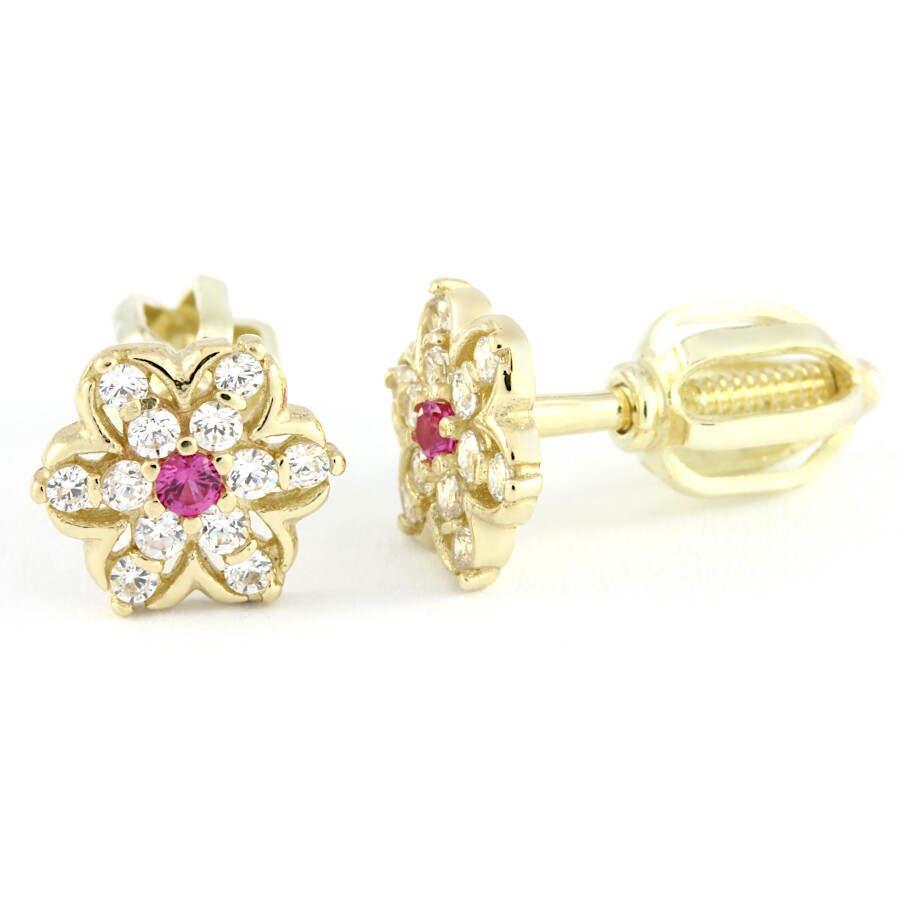 Náušnice zlaté Květinka střed červený zirkon