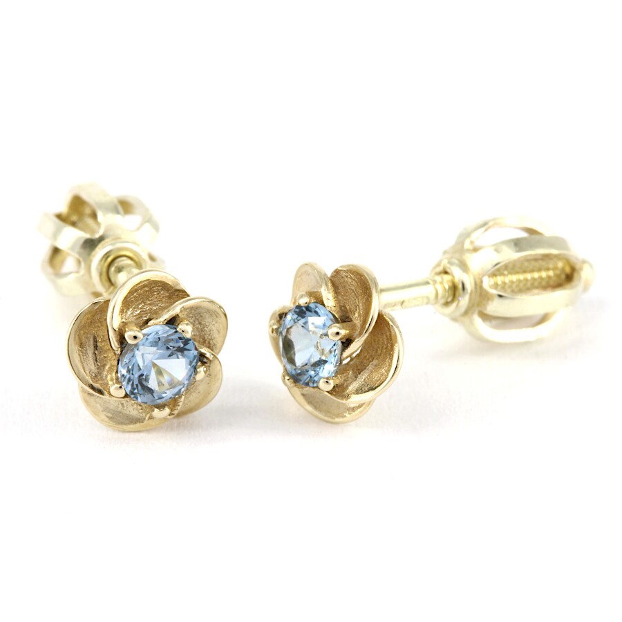 Náušnice zlaté Květinka střed světle modrý zirkon