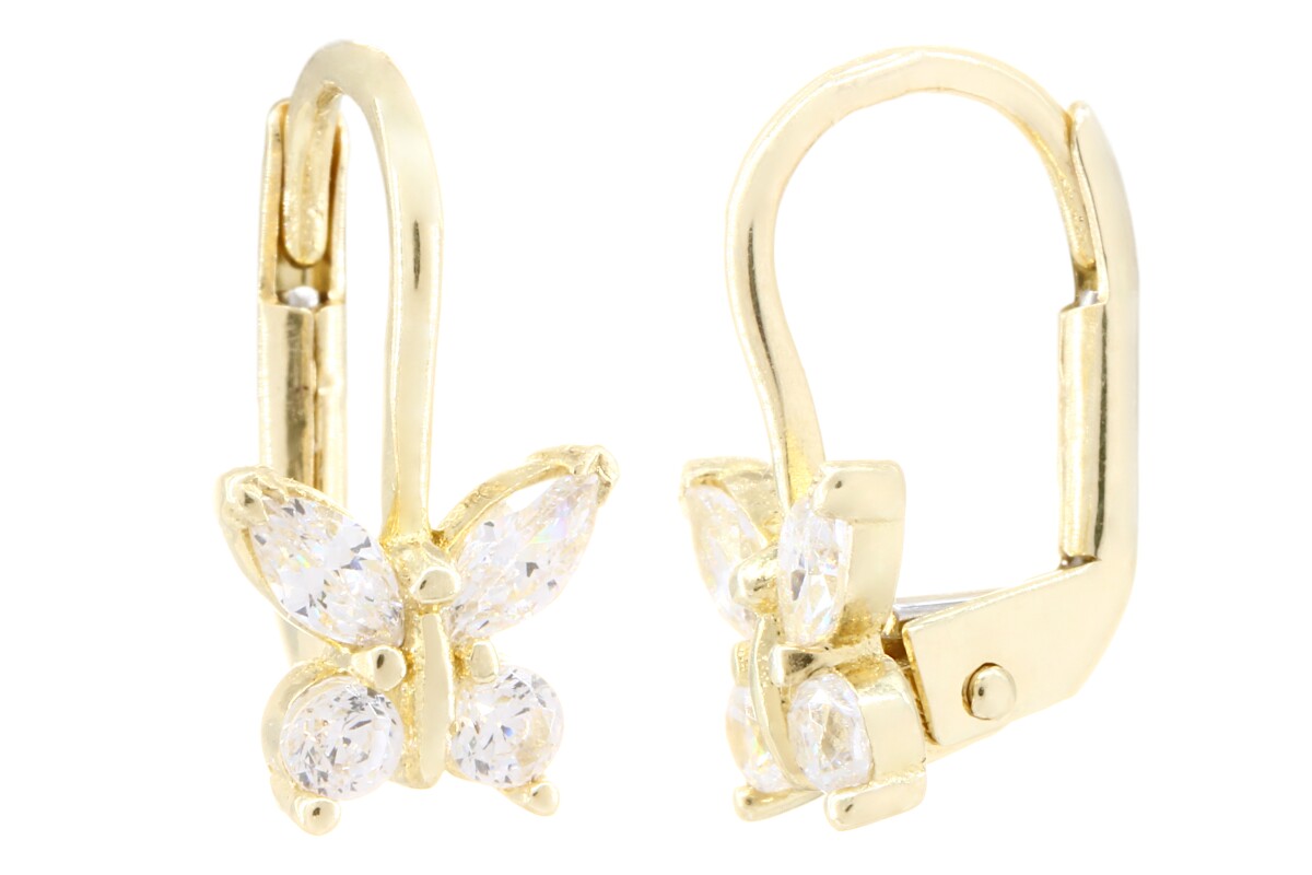 Náušnice zlaté Motýl s bílými zirkony