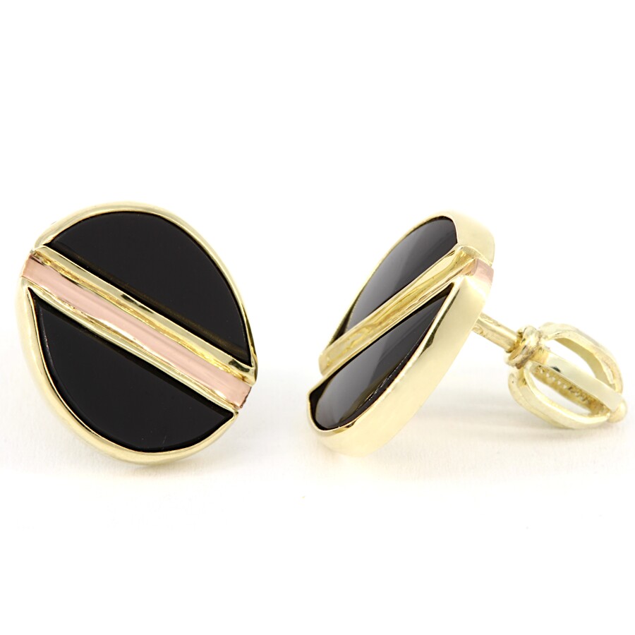 Náušnice zlaté Onyx rozdělený - ruční práce