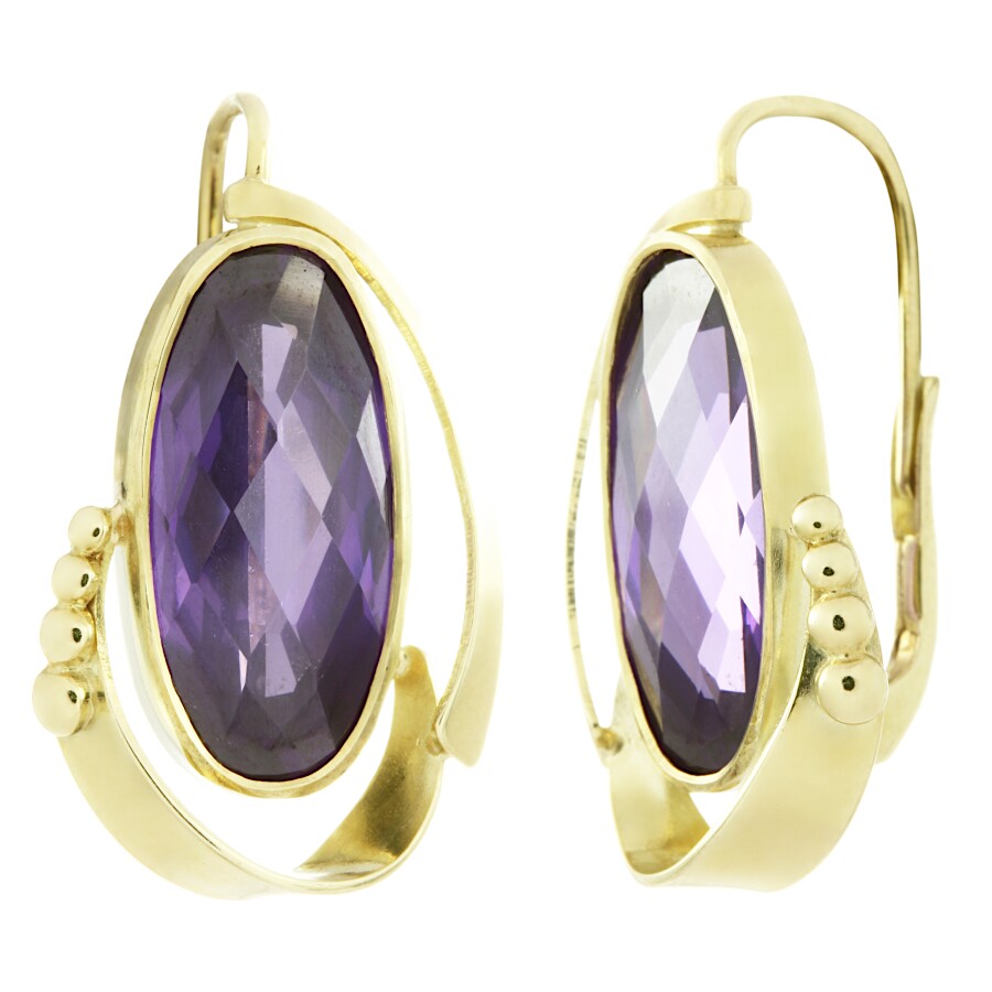 Náušnice zlaté Ovál ametyst přírodní šachovnicový brus
