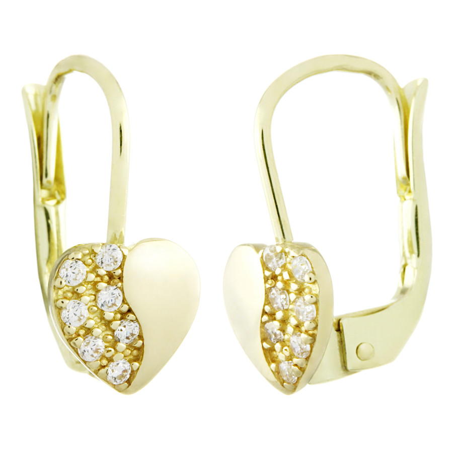 Náušnice zlaté Srdíčka polovina osázená bílými zirkony