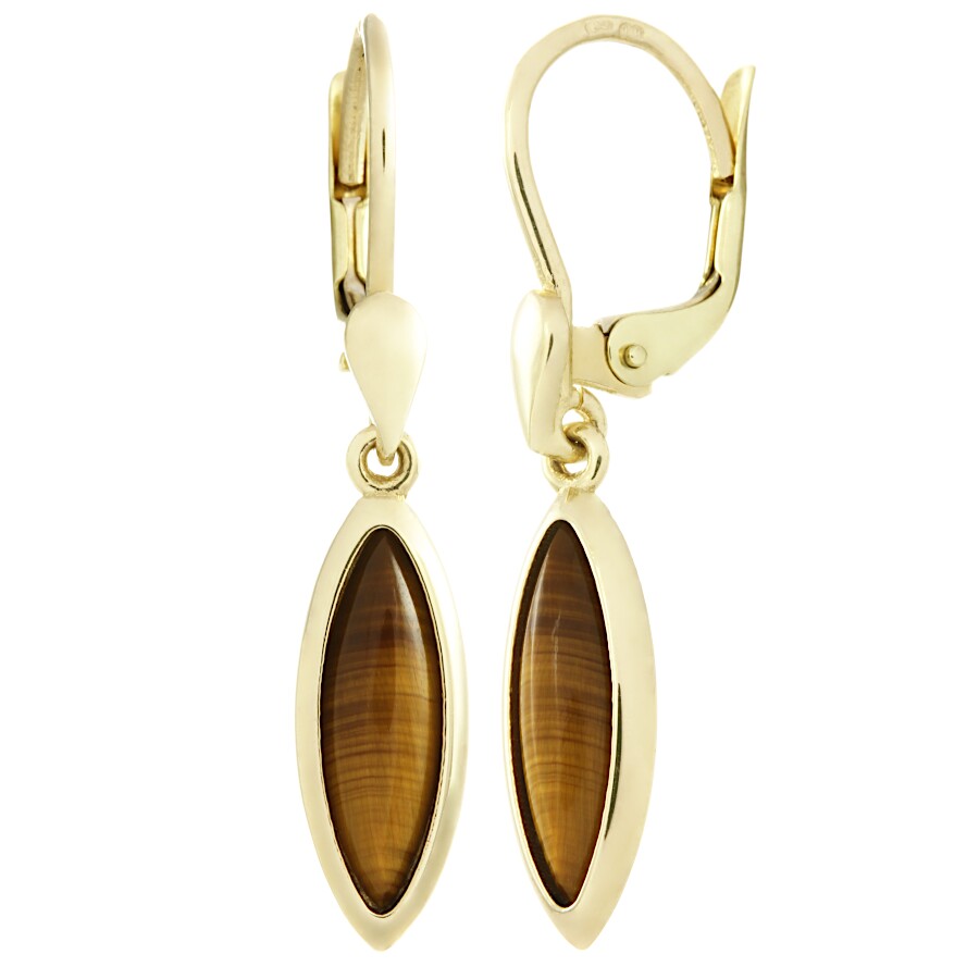 Náušnice zlaté visací Tygří oko špicovál