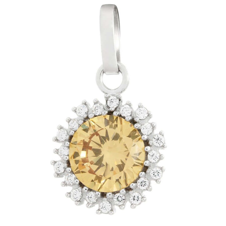Přívěsek bílé zlato Kolečko bílé zirkony a střed champagne zirkon ze soupravy