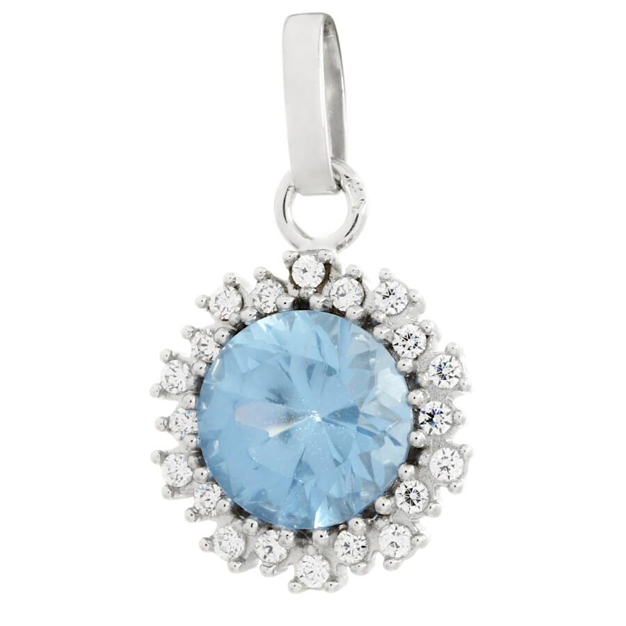 Přívěsek bílé zlato Kolečko střed syntetický akvamarín se zirkony