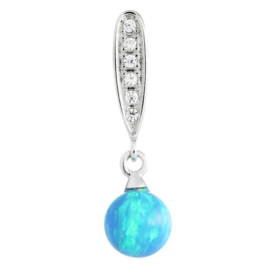 Přívěsek bílé zlato Opál syntetický modrý se zirkony