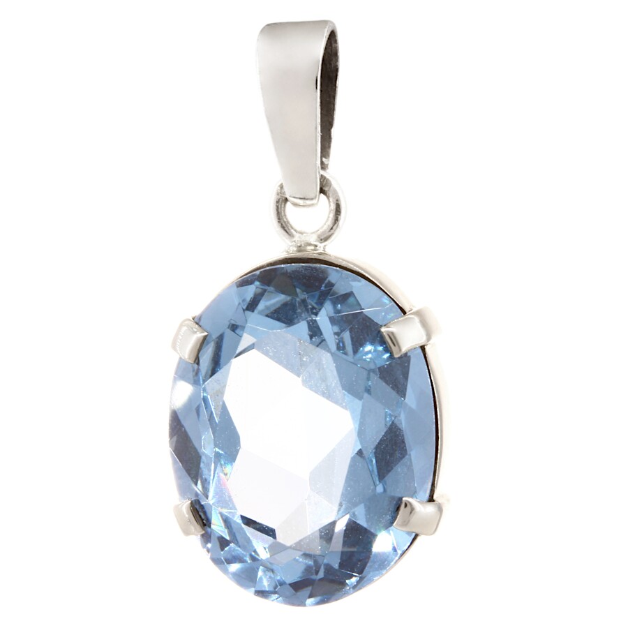 Přívěsek bílé zlato Ovál akvamarín syntetický - ruční práce