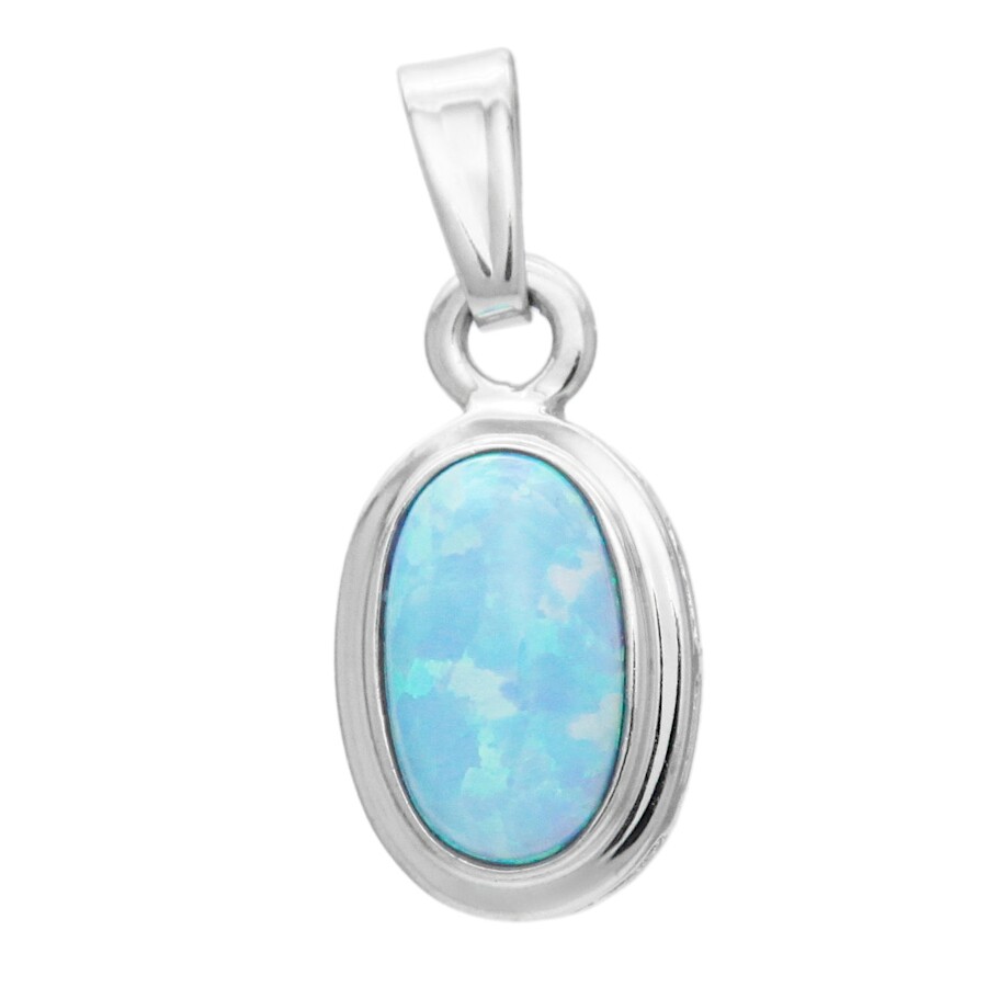 Přívěsek bílé zlato Ovál s modrým syntetickým opálem