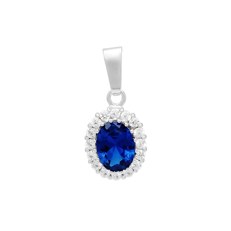Přívěsek bílé zlato Ovál střed modrý spinel se zirkony