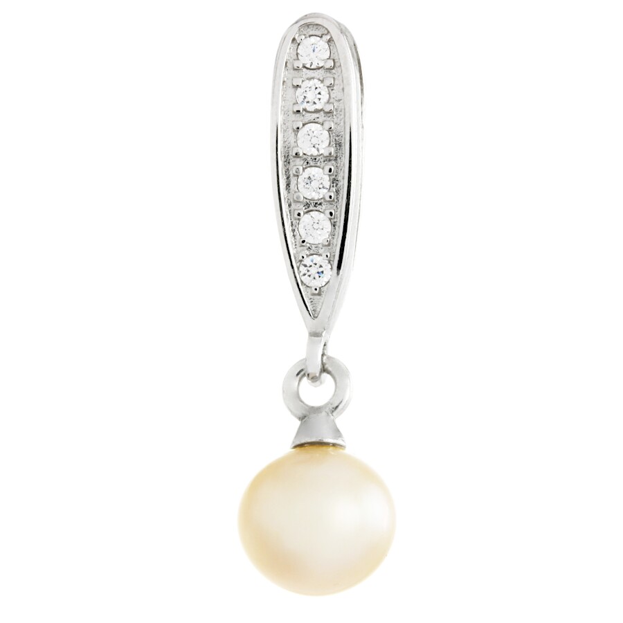 Přívěsek bílé zlato Perla růžová se zirkony