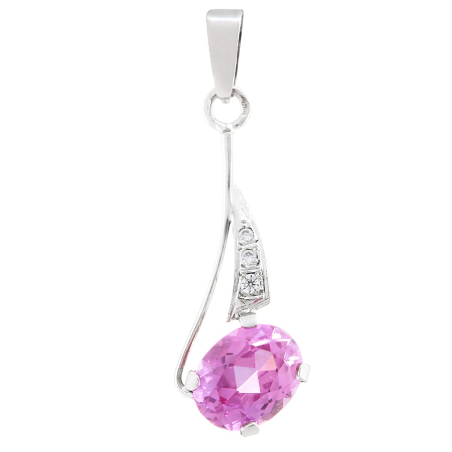 Přívěsek bílé zlato Zirkon růžový syntetický