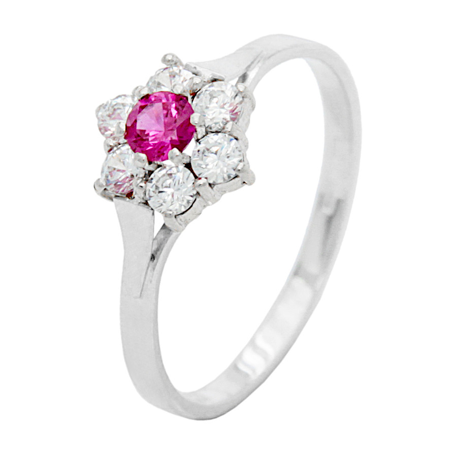 Prsten bílé zlato Hvězdička střed červený zirkon