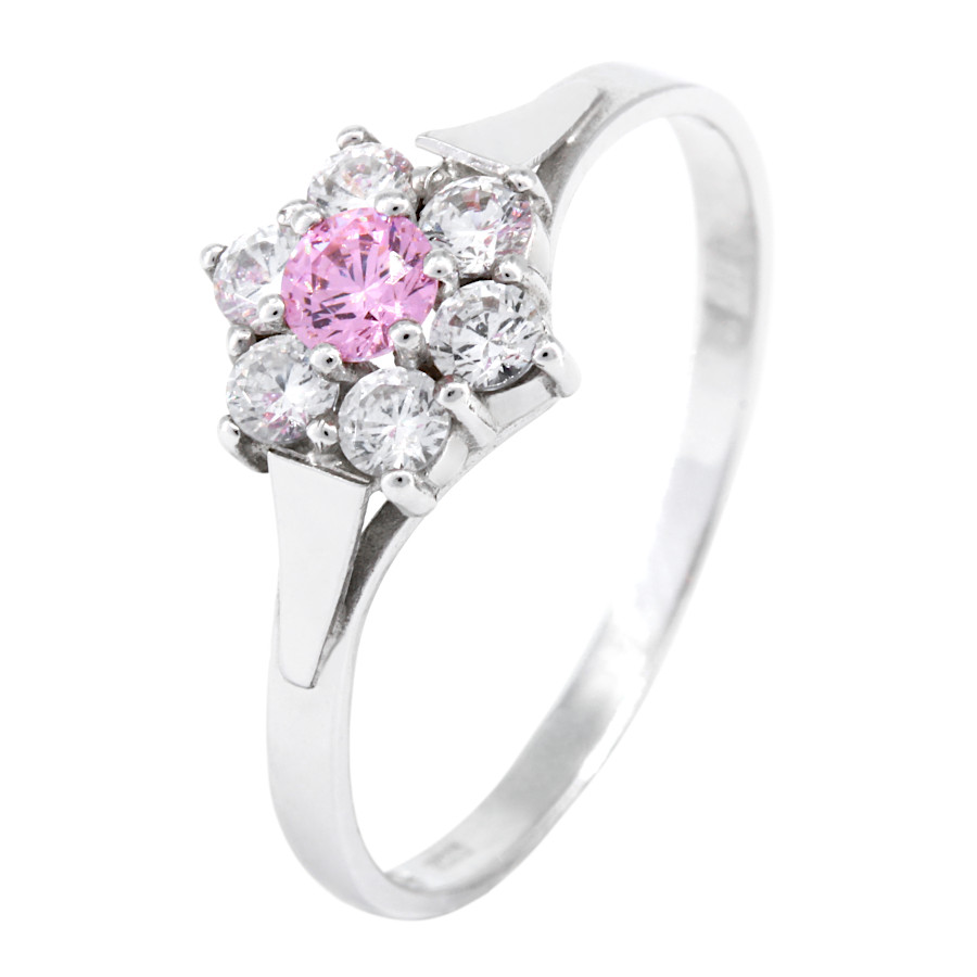 Prsten bílé zlato Hvězdička střed růžový zirkon