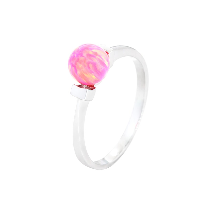 Prsten bílé zlato Opál růžový syntetický