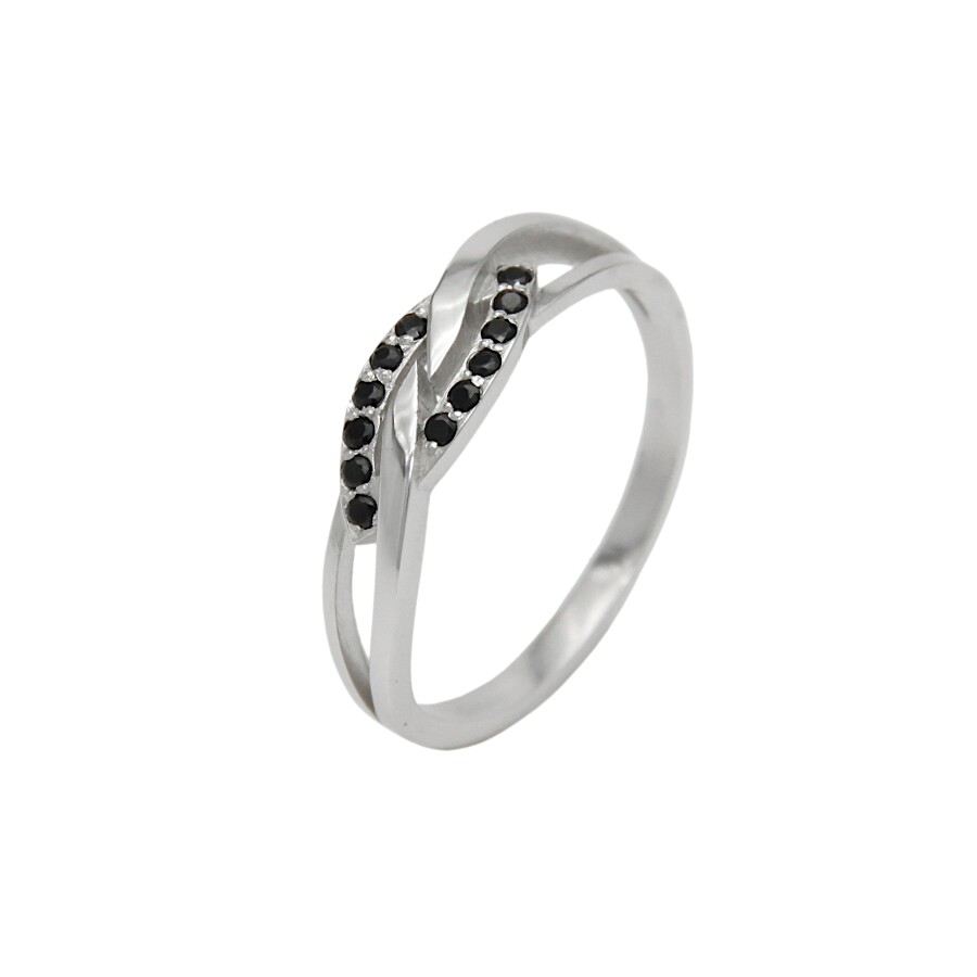 Prsten bílé zlato Ovály spletené s černými zirkony