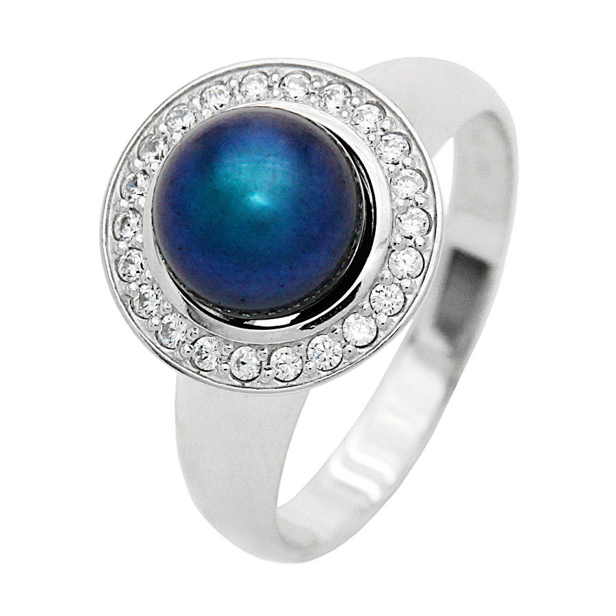 Prsten bílé zlato Perla černá v kruhu se zirkony