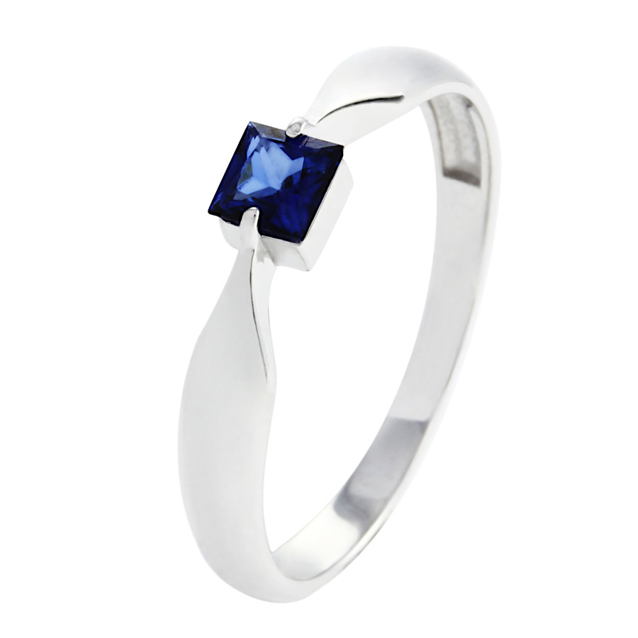 Prsten bílé zlato s přírodním Modrým safírem Princess