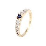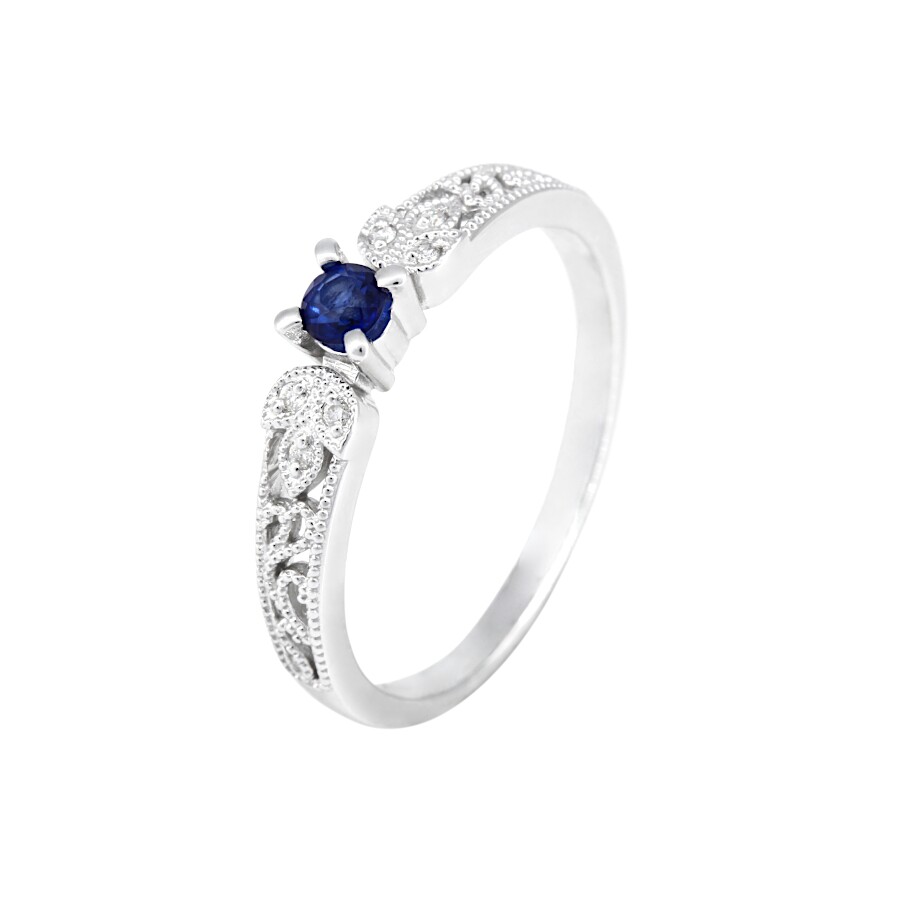 Prsten bílé zlato Safír přírodní v korunce s brilianty |