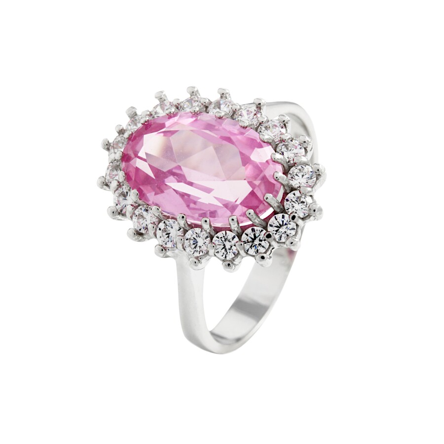 Prsten bílé zlato ze soupravy Ovál bílé zirkony a střed růžový zirkon velký ze soupravy