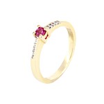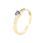 Prsten žluté zlato Safír s brilianty