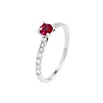 | Luxusní prsten bílé zlato s pravým kamenem Rubín a 14 briliantů v obrubě