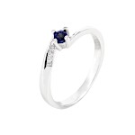 | Prsten bílé zlato Safír přírodní ve zkřížené šíně s brilianty