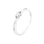 | Prsten bílé zlato Zkřížená šína s briliantem