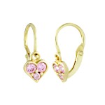 | Dětské náušnice zlato Srdíčko růžové zirkony