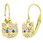 | Náušnice zlaté Kočky oči modré s růžovými zirkony
